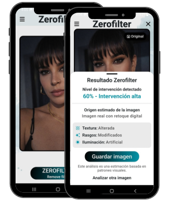 ZeroFilter detecta señales que el ojo no nota: retoques, filtros e intervención con IA. Una forma simple de ver con claridad.